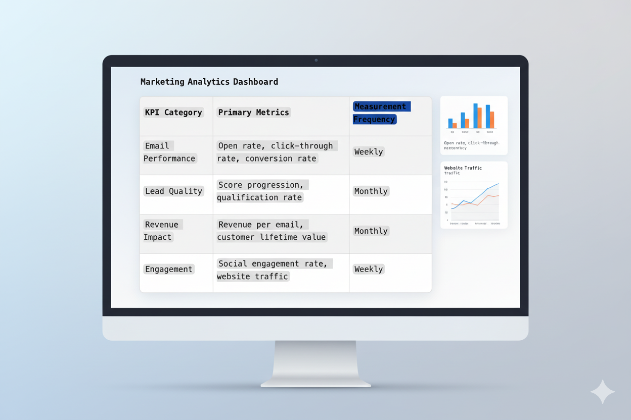 When it comes to lead nurturing, you’ll want to measure things like lead scoring progression, the time it takes for a lead to convert into a customer, and cost per acquisition. This gives you insight into how efficiently leads are moving through your sales funnel and which touchpoints are driving the most conversions.